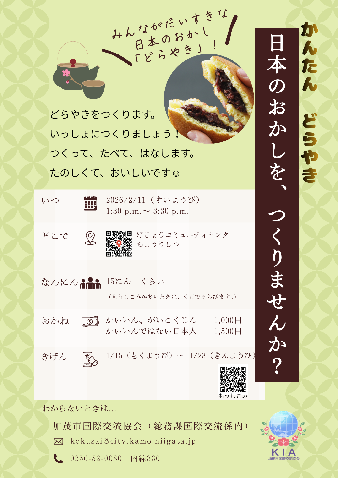 和菓子(どら焼き)づくり体験参加者募集